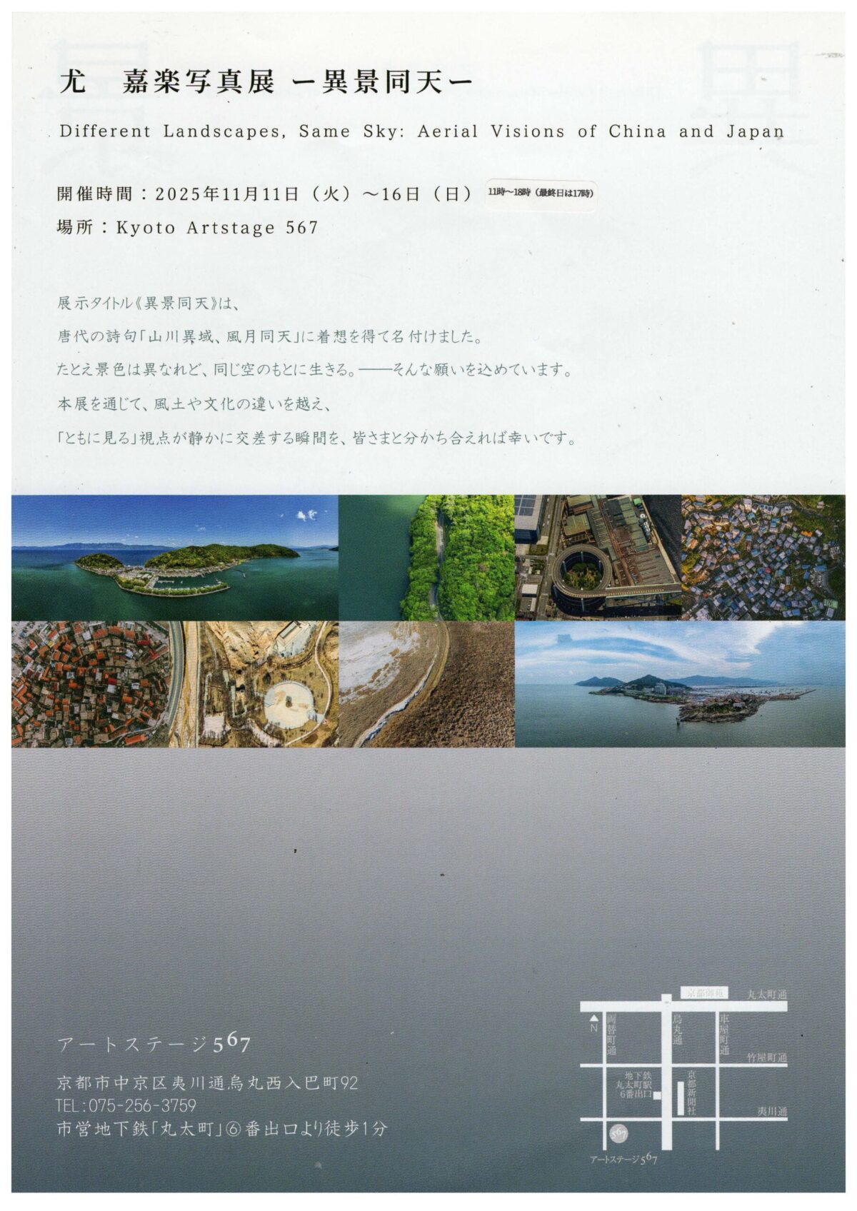 尤嘉楽 写真展 「異景同天」 2025.10.17 会期 2025年11月11日(火)〜16日(日) 11〜18時(最終日は17時) 会場 アートステージ567 令和7年度「文化庁・府庁界隈まちかどミュージアム」参加