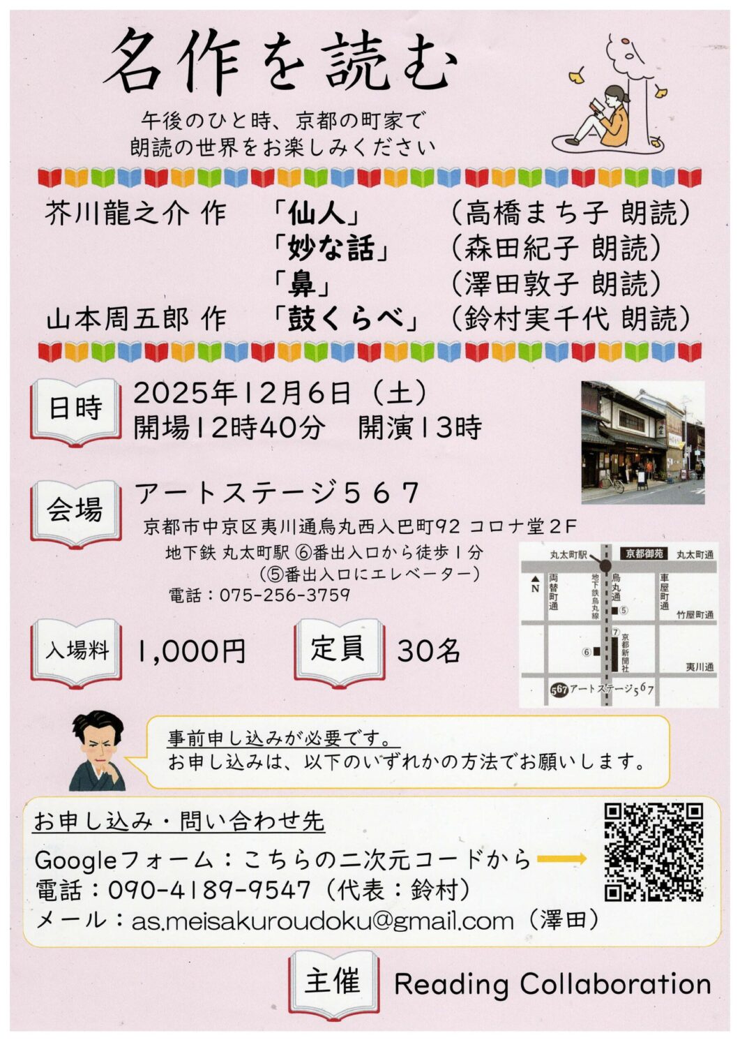 午後のひと時、京都の町家で 朗読の世界をお楽しみください